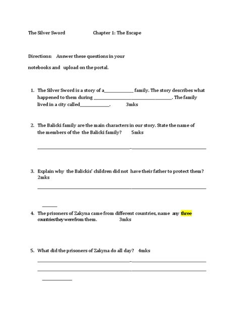 Download SILVER SWORD CHAPTER QUESTIONS Hardcover